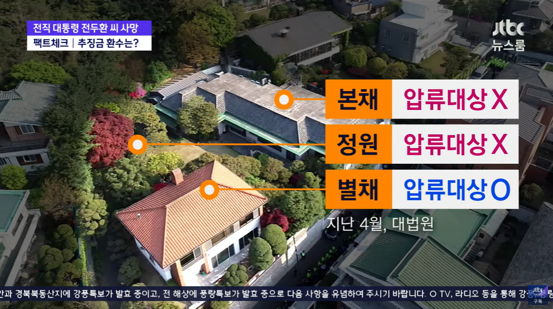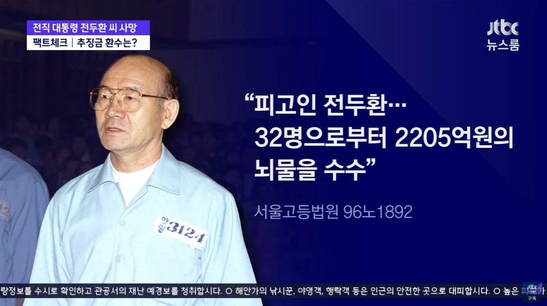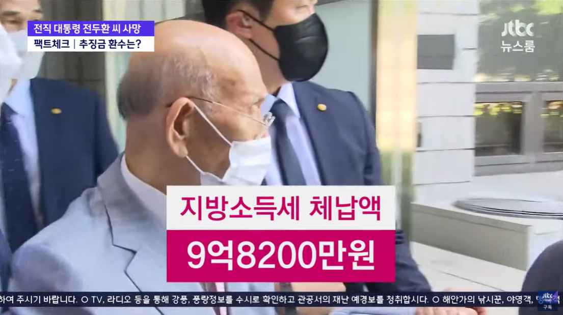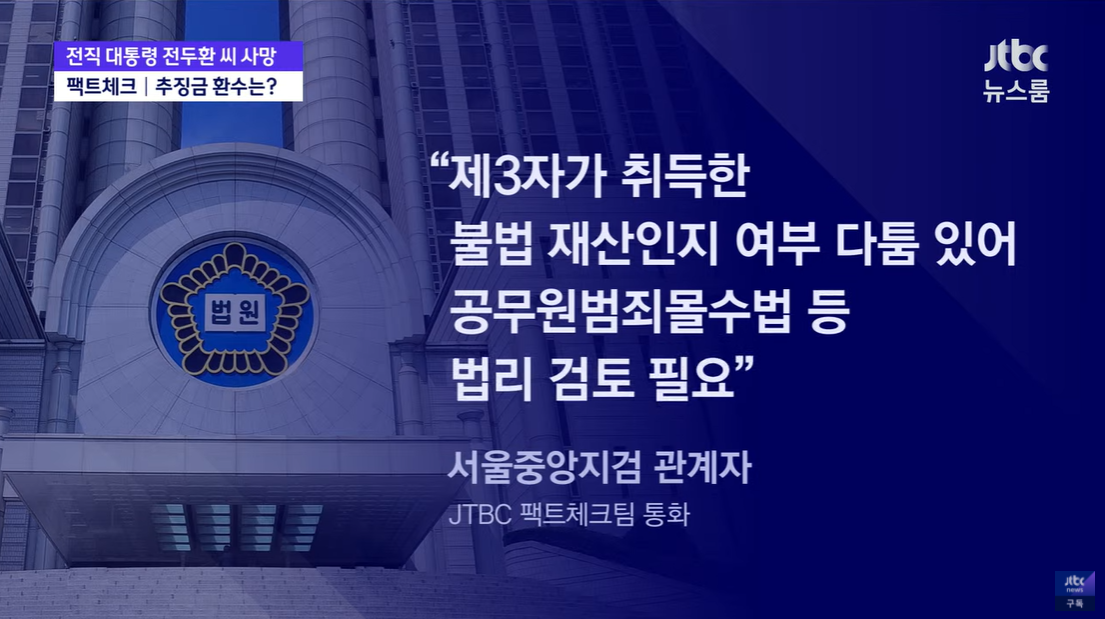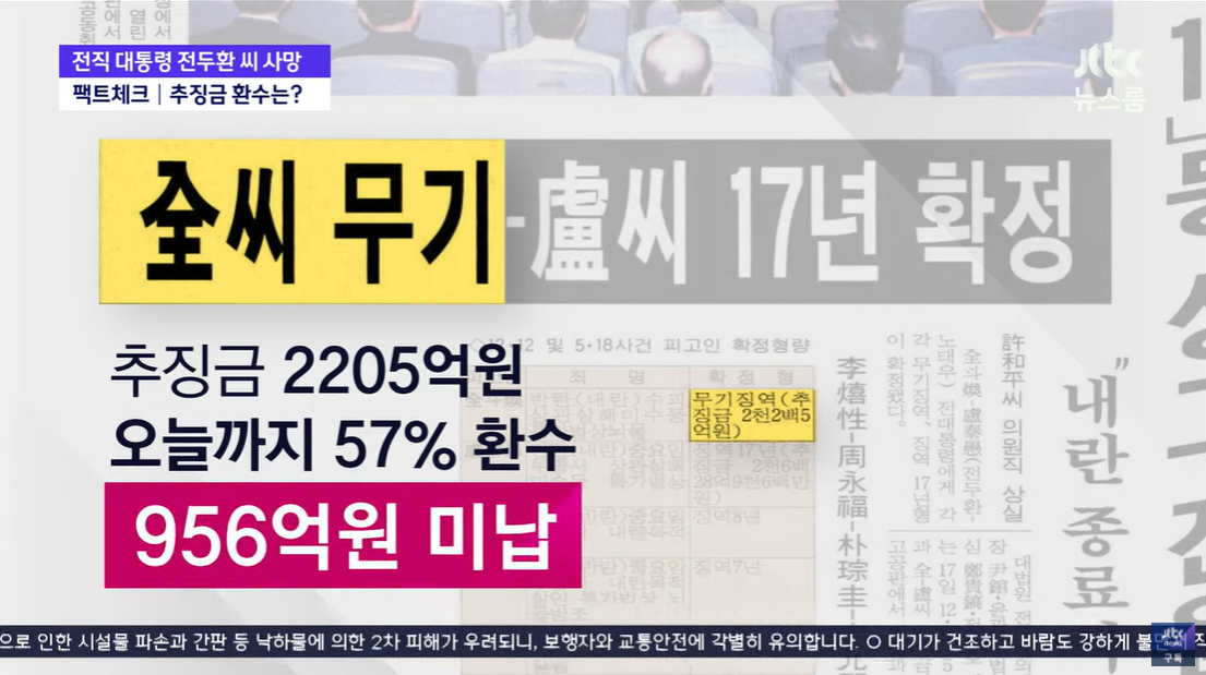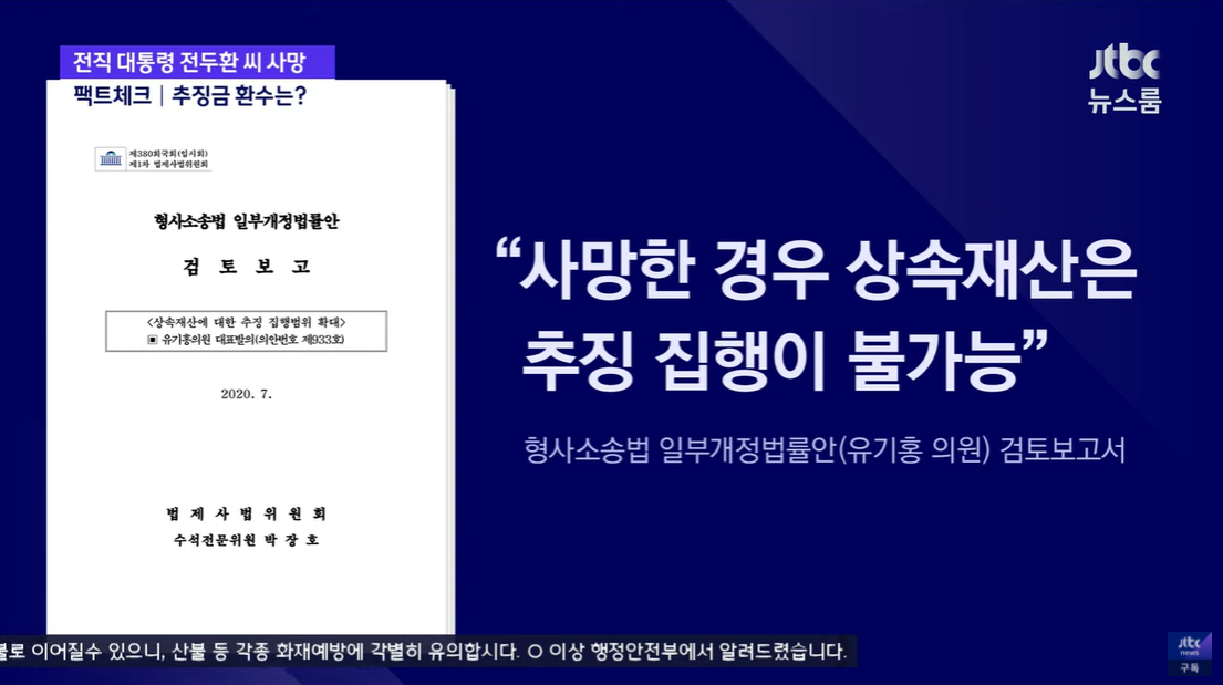 -전두환 사망 이후, 추징금 징수 문제 보도. jtbc.