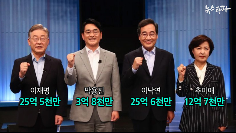일단 경선 기간 동안 가장 많은 정치 후원금을 모집한 사람은 이낙연 후보(25억 6000만 원)였다. 이재명(25억 5000만 원), 추미애(12억 7000만 원), 박용진(3억 8000만 원) 후보가 뒤를 이었다.
