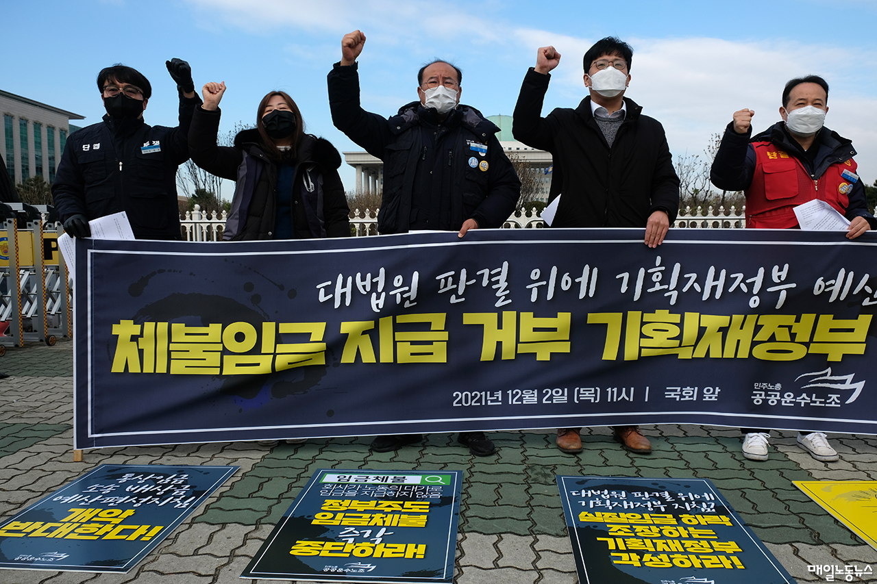 공공운수노조는 이날 오전 국회 앞에서 기자회견을 열고 “기재부의 지침 ‘개악’ 시도는 정부가 모범적 사용자로서 공공기관을 지도·감독해야 할 의무를 저버리는 것”이라며 “국민에게 보장된 재판청구권을 사실상 부정하고 공공기관 사용자들을 ‘나쁜 사용자’로 내몰고 있다”고 주장했다. 노조는 “대법원 판결을 일개 부처의 지침으로 깡그리 무시하고 노동자의 임금을 도둑질하겠다는 것과 다르지 않다”며 “법원의 판단을 존중하고 근로기준법에서 정한 초과근로수당을 정당한 통상임금 기준으로 산정해서 지급하라”고 요구했다.