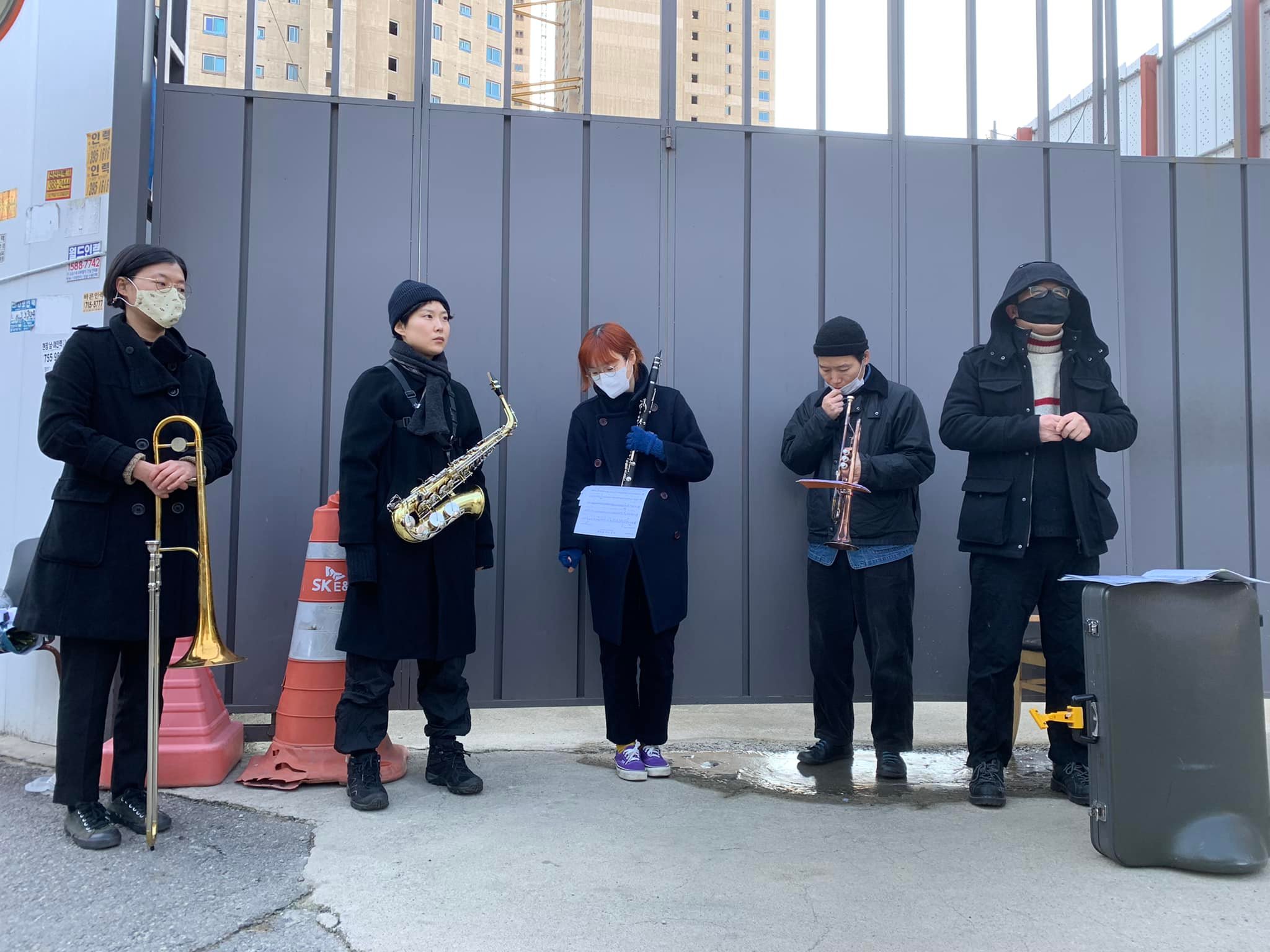 아현2구역 현장에서 캄캄밴드 주관 박준경열사를 기억하는 추모의 자리, 공연을 진행하고 있습니다. 추모와 함께 연대와 투쟁을 결의합니다.