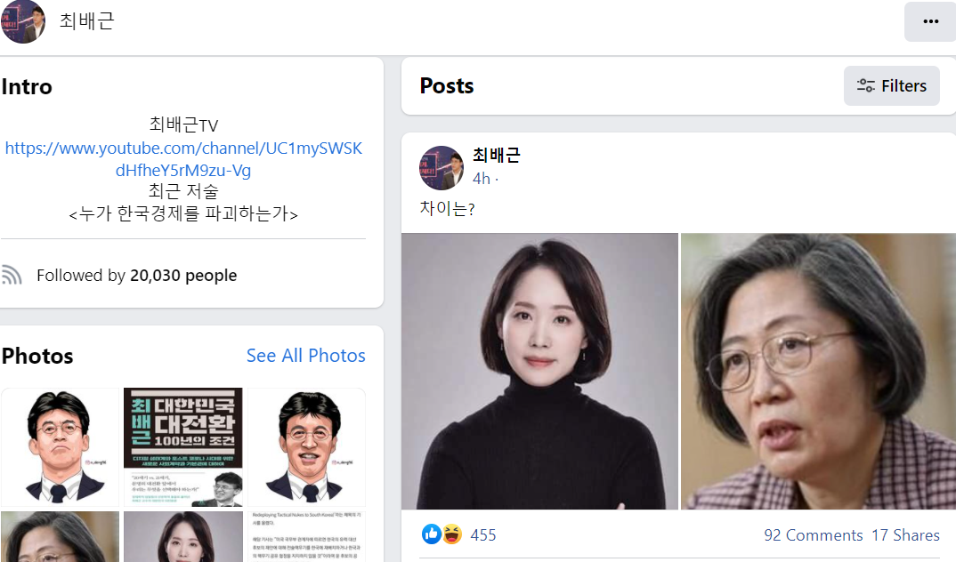 이수정 (국민의힘)과 조동연 (민주당 영입) 얼굴 사진을 올린 최배근.