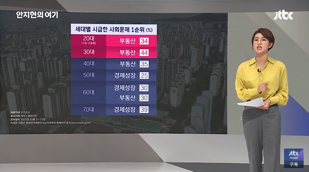 그렇기 때문에 실제로 지난달 케이스탯과 주간조선의 여론조사를 보면 2030세대에서 시급한 사회문제 1순위로 부동산 시장 안정화를 가장 많이 꼽았습니다.