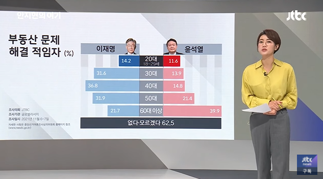 20대에서는 이재명, 윤석열 후보를 부동산 해결 적임자라고 뽑은 응답자 겨우 10%대에 불과했고요.