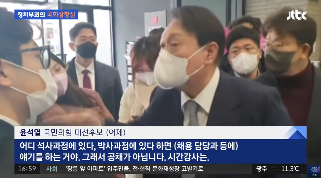 답변을 회피하고 엉뚱한 답변을 늘어놓음. 어떠한 종류의 비판도 정치인으로서 달게 받고, 경청해야 한다고 윤석열은 답했다.