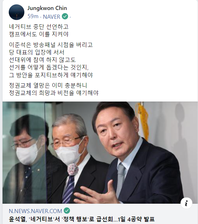 그런데 굳이 계속해서 국민의힘 윤석열의 '브레인'처럼 코치 일을 도맡아 하고 있다.