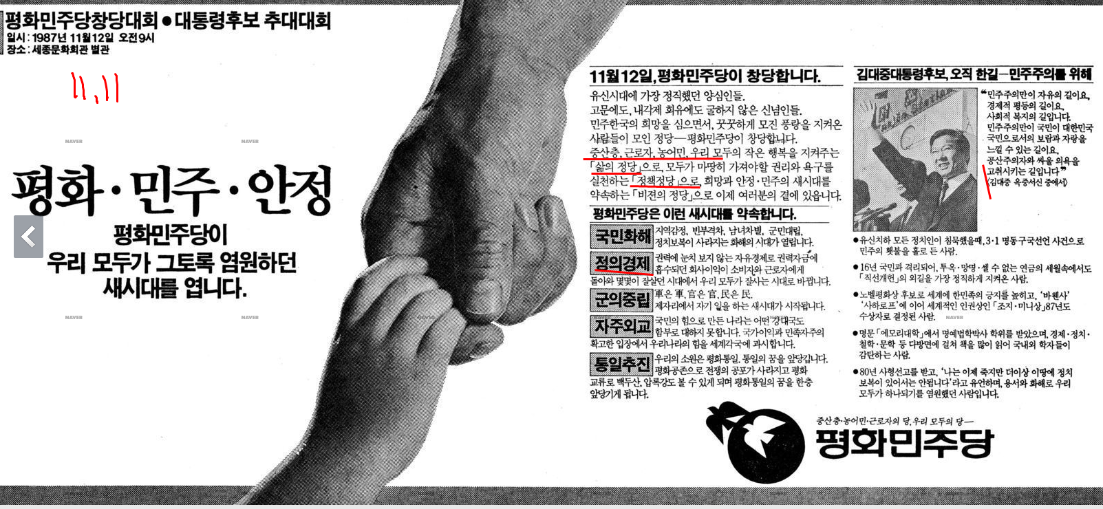 1987년 보다 못한, 2022년 민주당. 87년 김대중 후보는 '부유세' 라도 내걸었다. 어쩌다가 2022년 더불어민주당은 1987년 평민당 대선 공약보다 더 퇴보했는가? 심지어 통일민주당보다. 1987년 '6공화국 헌법'에서 '결선투표제도' 누락한 것, 김영삼-김대중의 오류다. 1990년 김영삼이 3당합당해서 2022년 32년간 한국정치를 규정하고 있다. 대중,노동자,시민의 정치참여를 죽쒀서 개주는 정치를 지난 32년간 했지 않나? 87년 김대중이 '부유세 신설'을 공약할 정도였다. 적어도 '농가부채 탕감'이라고 김영삼,김대중도 크게 적어놨다.