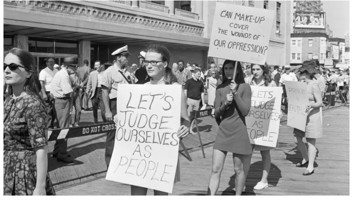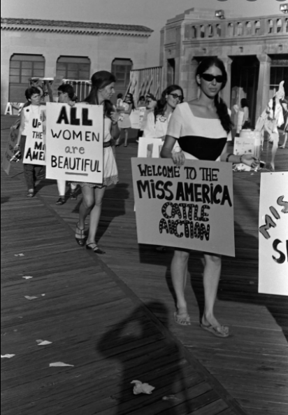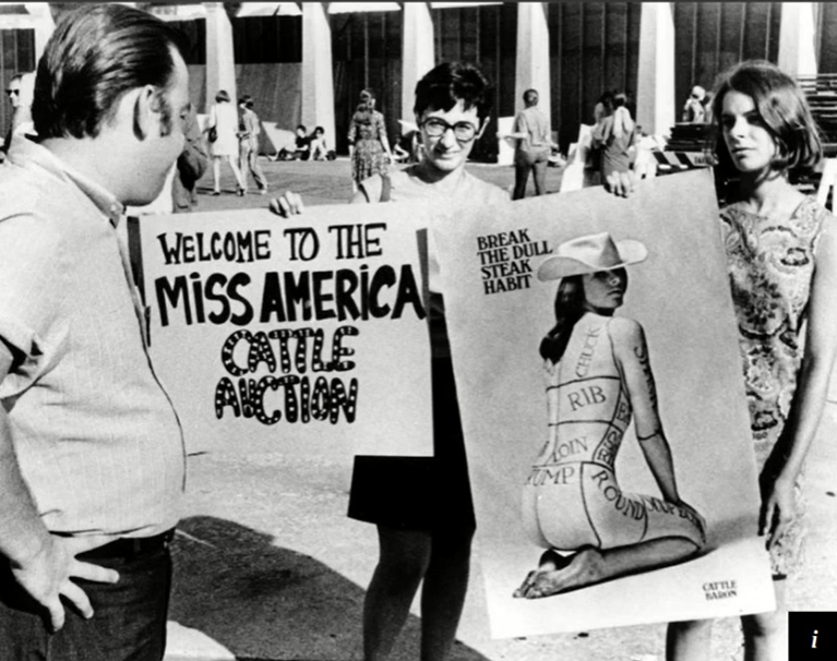 (위 왼쪽. 미인대회 선발 중계방송 방해 시위. Miss America Pageant 방해 )