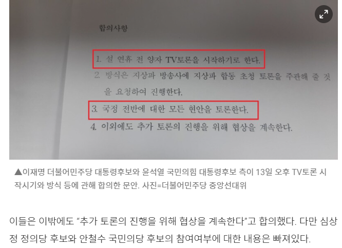 민주당 이재명 후보와 국민의힘 윤석열 후보 양자간 TV토론을 하기로 합의했는데, 방송사와 두 선본도 잘못한 결정이다. 독재적 발상이 아닐 수 없다.