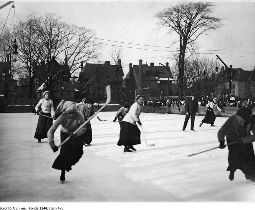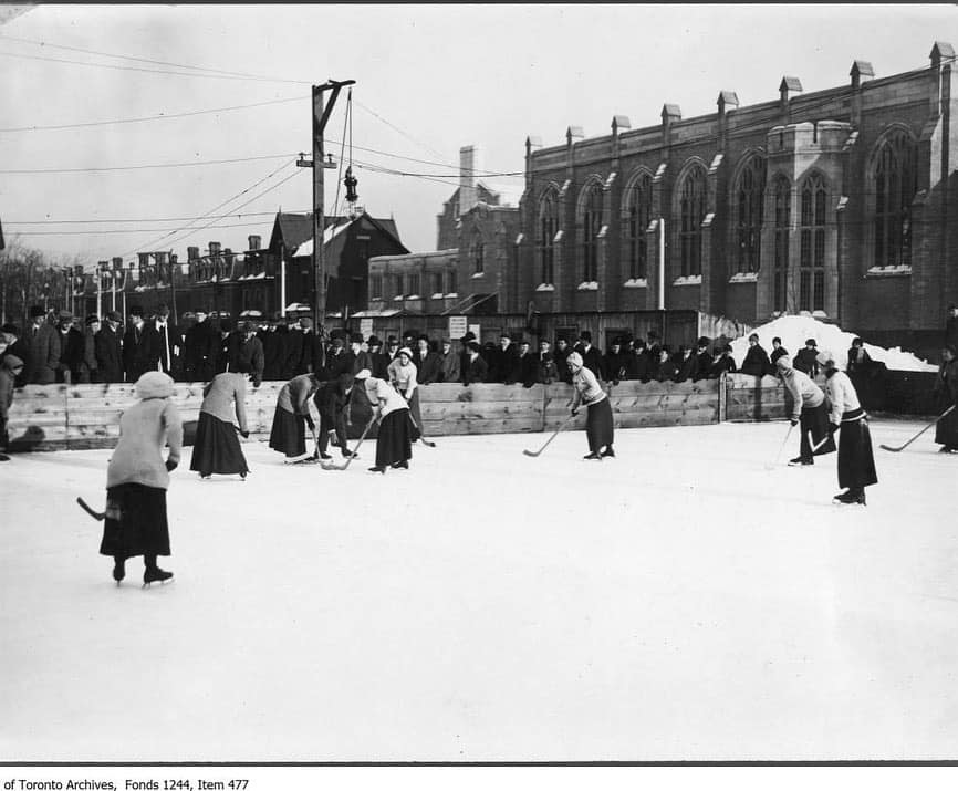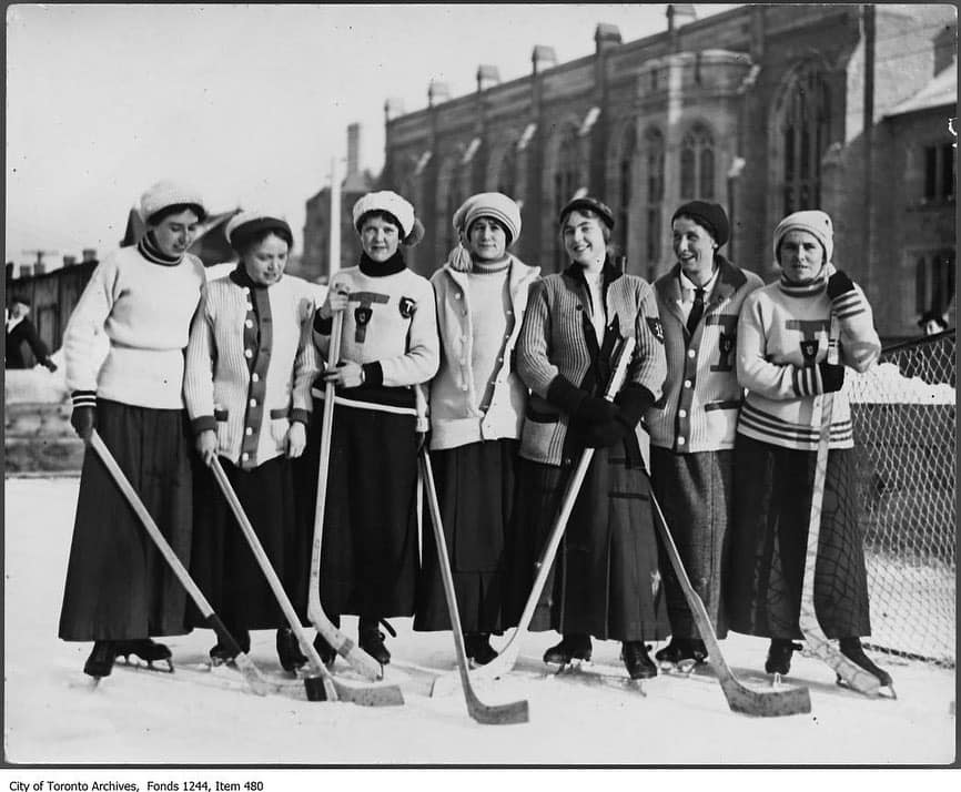 Women playing ice hockey at U of T around 1912. City of Toronto Archives