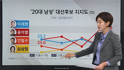 바로 20대 남성이었습니다. 가장 지지율이 높았던 과거에도 25% 수준이었는데, 이번 조사에서 47.8%로 2배 가까운 지지율을 기록한 겁니다.