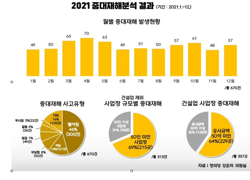 강은미 의원, 2021년 한해 동안 발생한 670건의 중대재해분석.