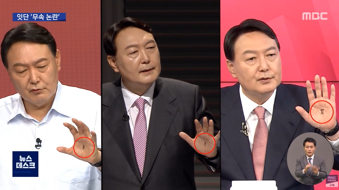 김 씨는 “남편도 약간 영적인 끼가 있거든. 그래서 나랑 연결된 거야”라고 말했다. 손바닥에 ‘왕(王)’자를 그리고 토론에 나오는 건 영적인 끼가 없으면 어렵겠다. 이미 3명의 도사가 등장했는데 그중 무정은 윤 후보도 진즉 알았던 모양이다. 김 씨는 “무정은 남편을 20대 때 만났다. (남편이) 계속 사법고시에 떨어져 한국은행 취직하려고 하니까 ‘너는 3년 더 해야 한다’고 해서 붙었다”고 말했다. 김 씨가 윤 후보를 만나기 전에 알고 지낸 다른 검사의 어머니는 암자 비슷한 걸 차려놓고 점 보는 사람이었다.