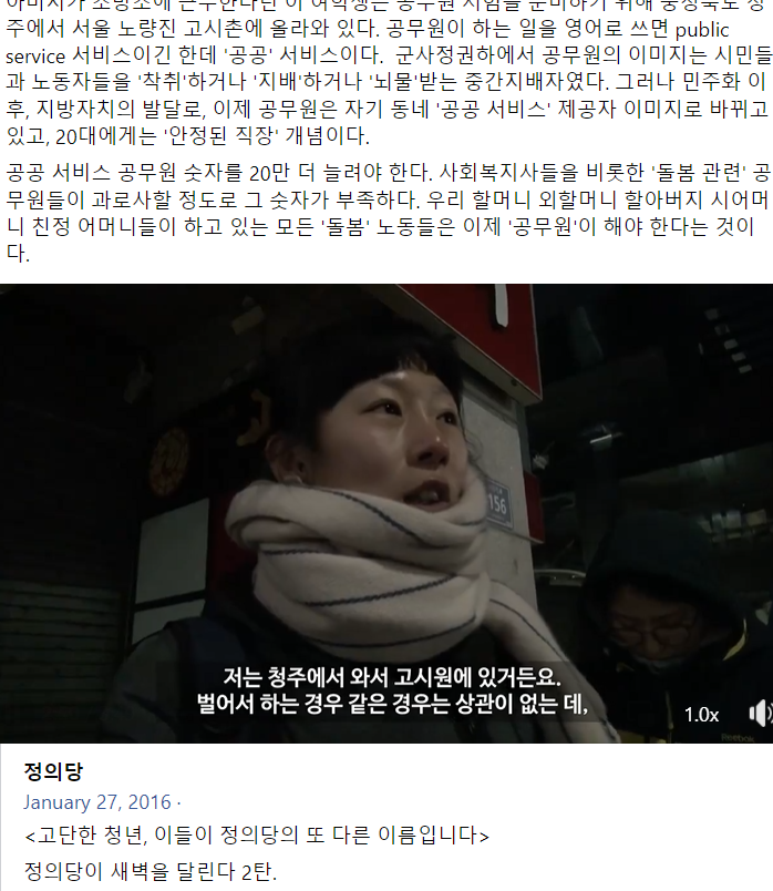 공공 서비스 공무원 숫자를 20만 더 늘려야 한다. 사회복지사들을 비롯한 '돌봄 관련' 공무원들이 과로사할 정도로 그 숫자가 부족하다. 우리 할머니 외할머니 할아버지 시어머니 친정 어머니들이 하고 있는 모든 '돌봄' 노동들은 이제 '공무원'이 해야 한다는 것이다.