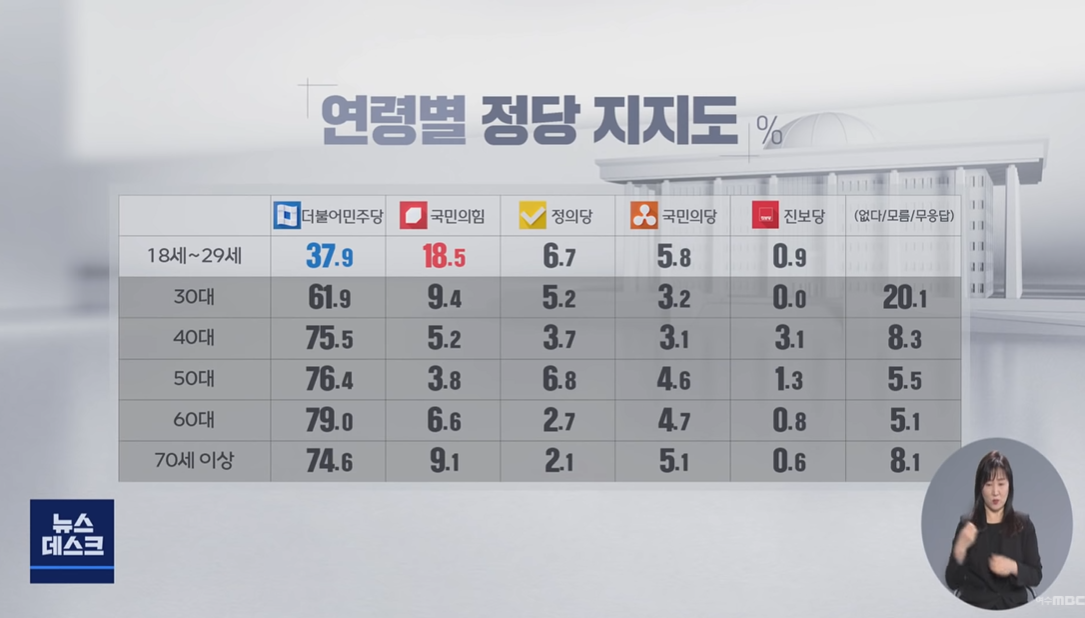 18세~29세 : 25.9%, 30대 19.1%, 40대 10.6%