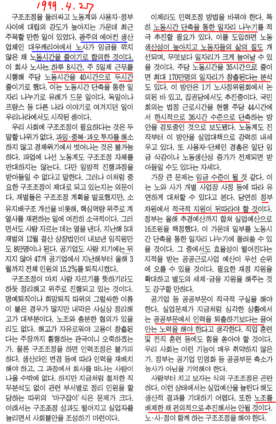 1999년 4월 27일. (한겨레 이경 컬럼니스트, 일자리 나누기 )
