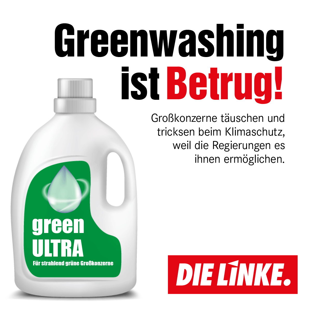 독일 좌파당 논평. 대기업들이 마치 기후보호에 열성을 다 하는 것처럼 한다. "기업 기후 책임 감시"에 따르면 이러한 대기업의 자평은 대부분 '속임수'였다.