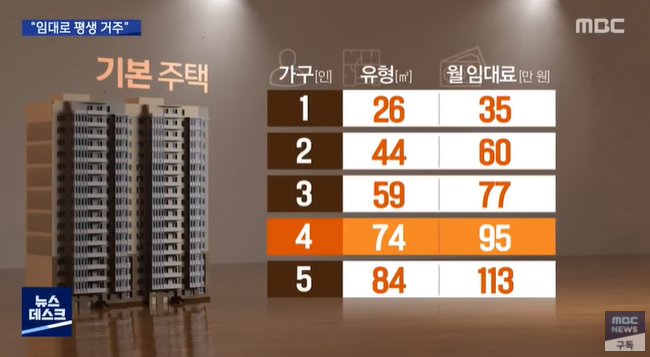 월 임대료는 올해 4인 가구를 기준으로 하면 매달 최대 95만원 가량을 내고 74㎡형에서 살 수 있는 겁니다.