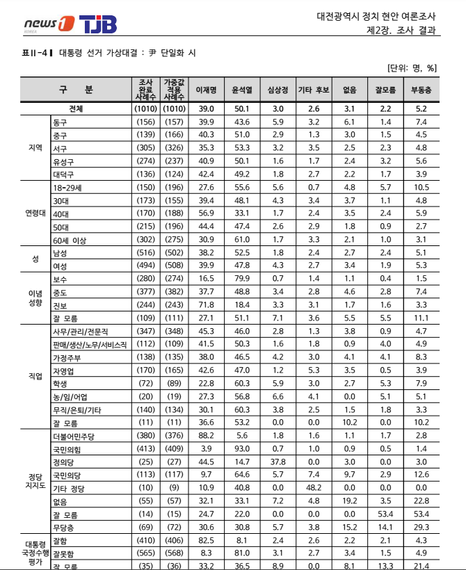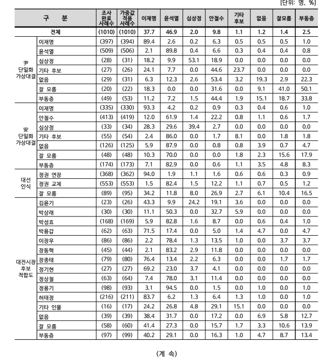 이재명 37.7, 윤석열 46.9, 심상정 2, 안철수 9.8