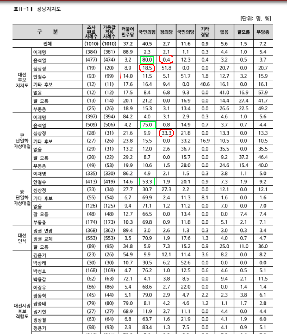 20대 이재명 23.7, 윤석열 50.1, 심상정 3.4, 안철수 17.7
