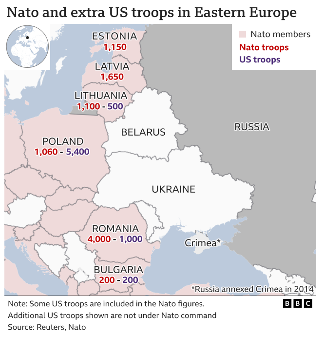 Nato and US extra troops in Eastern Europe
