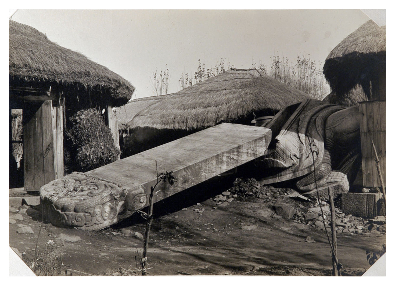쓰러진 채 방치되어 있는 삼전도비. Seoul, Korea, 1916