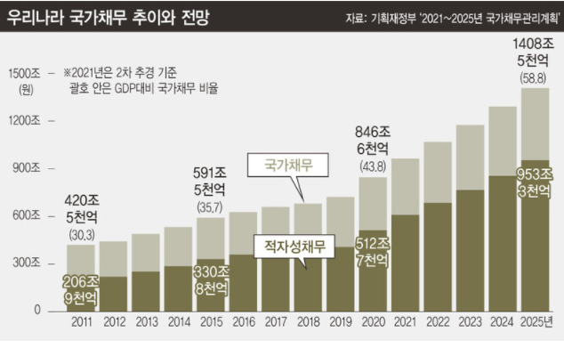 우리나라는 ‘국가재정법’에서 “건전재정을 유지하기 위해 국가채무를 적정수준으로 유지하도록 노력해야 한다”고 규정하고 있다.