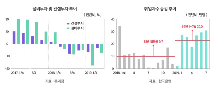 국내경제는 2019년 글로벌 경기·교역 둔화, 미-중 무역갈등 장기화, 일본의 수출규제 등 대외여건이 크게 악화되며 성장세가 둔화됐으나, 고용은 서비스업 중심으로 개선이 예상된다. 2020년 이후에는 세계경제 회복, 정책효과 등으로 성장세가 예상되지만 보호무역주의 확산 등 대외 불확실성과 생산가능 인구 감소·소비패턴 변화 등 구조적 제약 요인이 상존하고 있다.