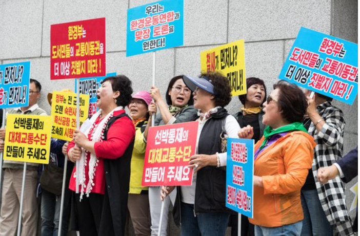전남 신안군 흑산면 주민들이 지난해 9월 19일 서울 마포구 국립공원관리공단 서울사무소 앞에서 흑산공항 건설을 촉구하고 있다. [뉴스1]