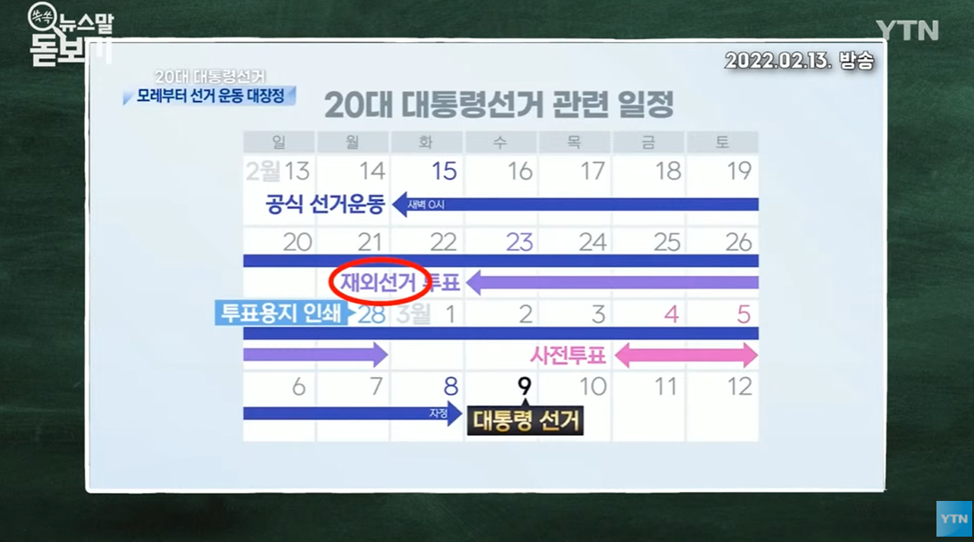 2022년 3월 9일 대통령 선거, 재외 국민 투표 신청자 22만. 2월 23일에서 28일까지 실시.