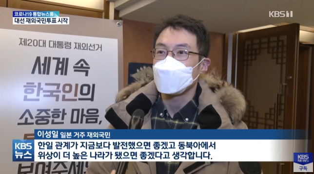 [이성일/일본 거주 재외국민 : "한일 관계가 지금보다 발전했으면 좋겠고 동북아에서 위상이 더 높은 나라가 됐으면 좋겠다고 생각합니다."]