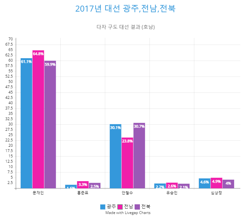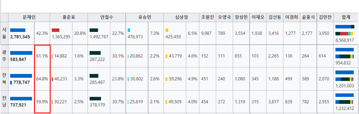 2017년 19대 대선 광주, 전남, 전북 대선 결과.