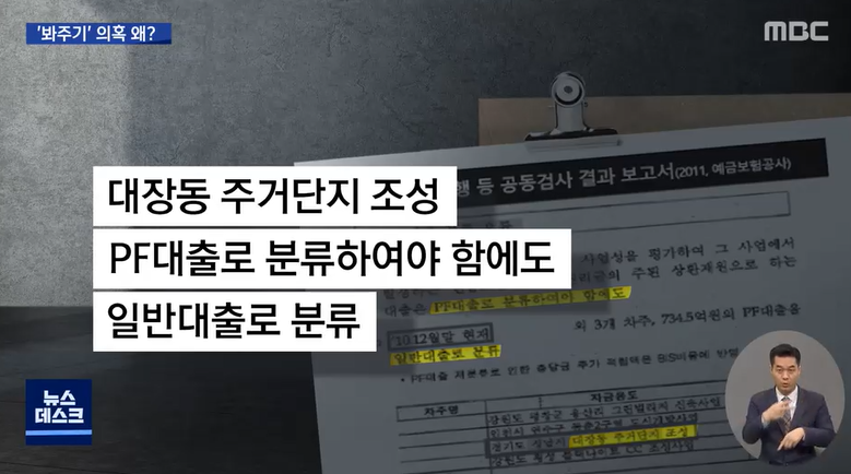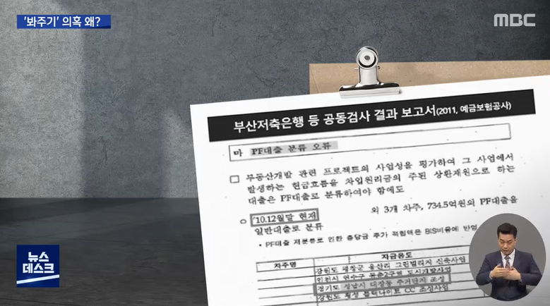 그러나 수사가 한창이던 2011년 4월 예금보험공사는 보고서를 통해, '대장동 대출 역시, 사업성을 평가해 자금을 빌려주는 PF대출로 분류돼야 했다'고 지적했습니다.