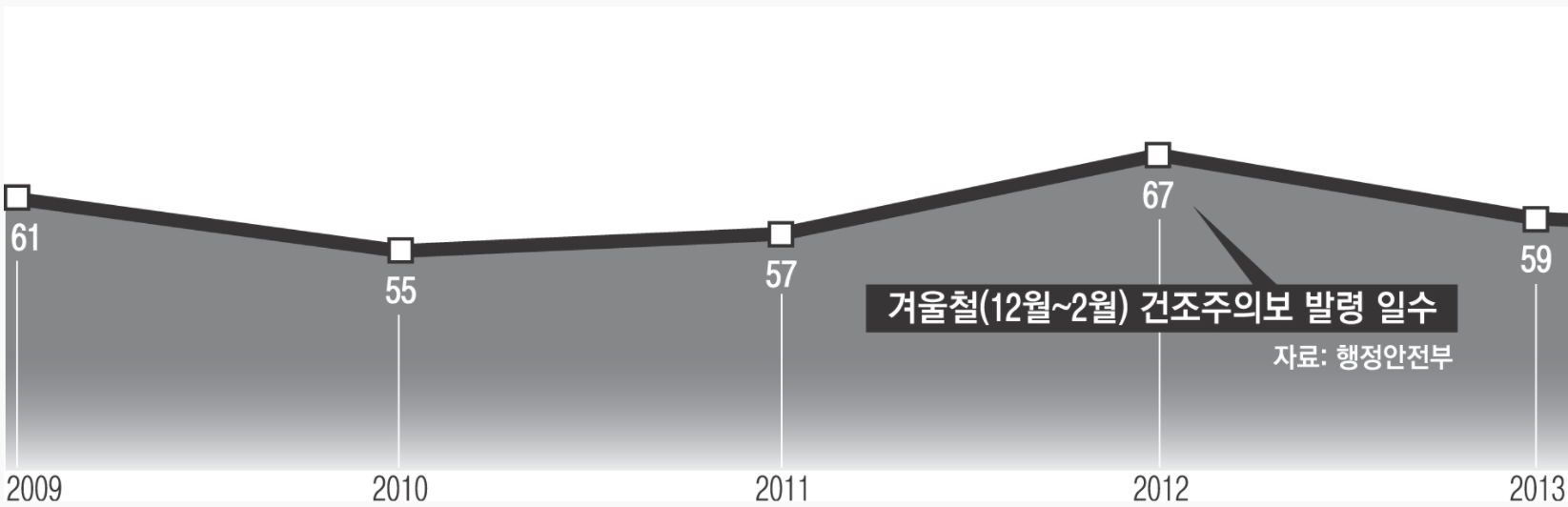 지금은 다르다. 어떤 지역에서든, 언제든, 산불이 난다. 김 과장이 말했다. “지금은 강원도 고성에서 불이 먼저 났다가, 경상남도에서 났다가 해요. 어떤 경향성을 보인다기보다는 국지적으로 조건만 되면 발화합니다.” 불이 시작되는 시기는 빨라졌고, 끝나는 시기는 늦춰졌다. “지금은 1월부터 시작되는 것 같아요. 10년 전쯤엔 보통 5월 중순이 되면 거의 불이 끝났거든요. 그런데 작년엔 8월까지도 불이 이어졌어요.” 1년 열두 달 중 긴장해서 산불 상황을 주시해야 하는 기간이 8개월로 늘어난 것이다. 산불은 ‘연중화’되고 있다.
