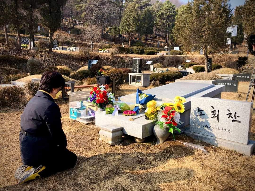 노회찬 묘소 찾은 심상정 "70년 된 불판 갈기, 이렇게 어려울 줄이야"