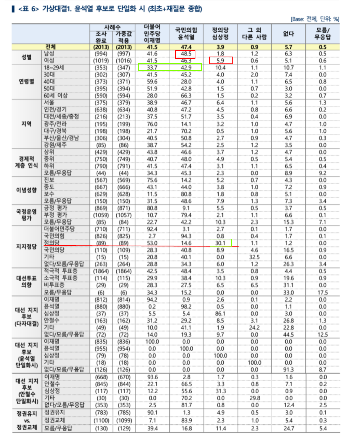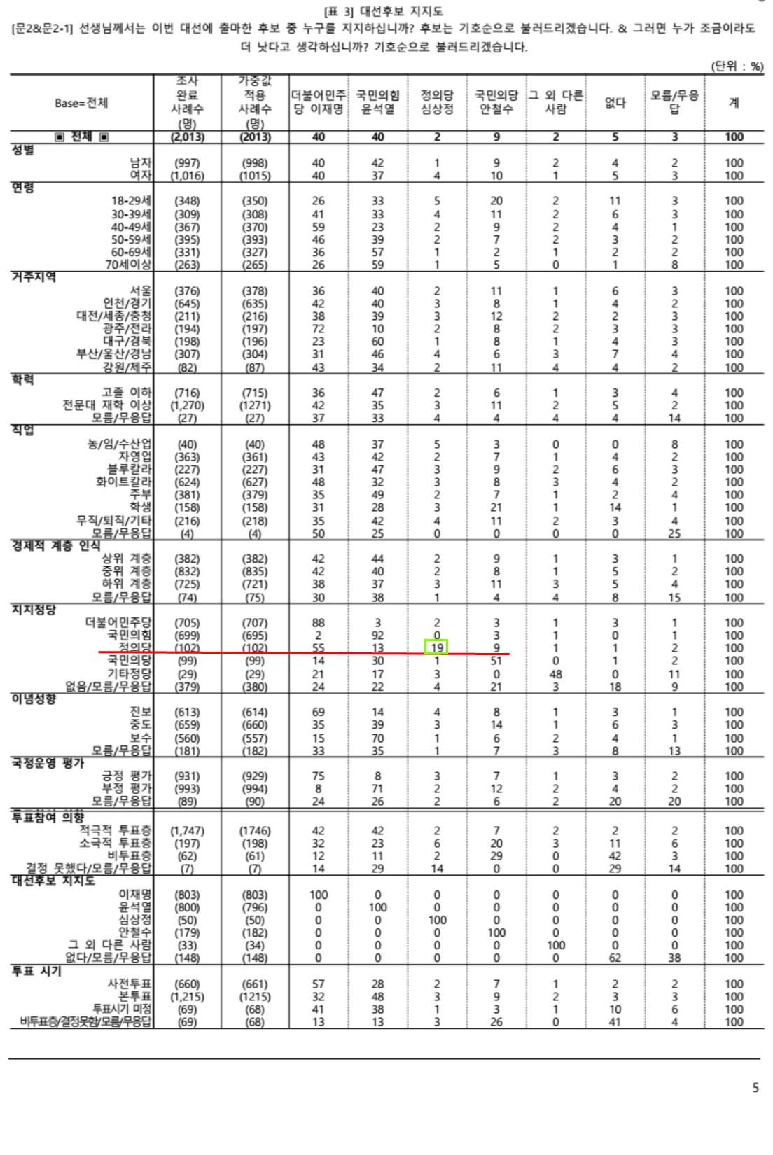민주당 지지자들이 심상정에 투표 (0.2%), 국민의힘 지지자들 (0.5%), 국민의당 지지자들 (.13%)