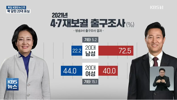 지난해 4.7 재보궐선거 당시 서울에서 드러났던 20대 남여 표심 결과에 국민의힘이 주목했고, 이를 이번 대선에 전략적으로 활용했다는 겁니다.