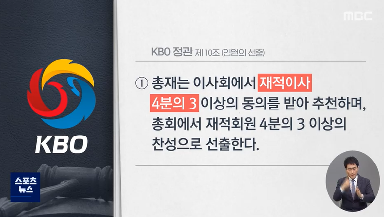 하지만 이사 4분의 3 이상의 동의가 필요한 KBO 정관 기준에 미치지 못했다가, 이후 일부 구단들이 구단주와의 내부 논의 끝에 입장을 바꿔 허구연 위원을 단일후보로 추천하게 된 겁니다.