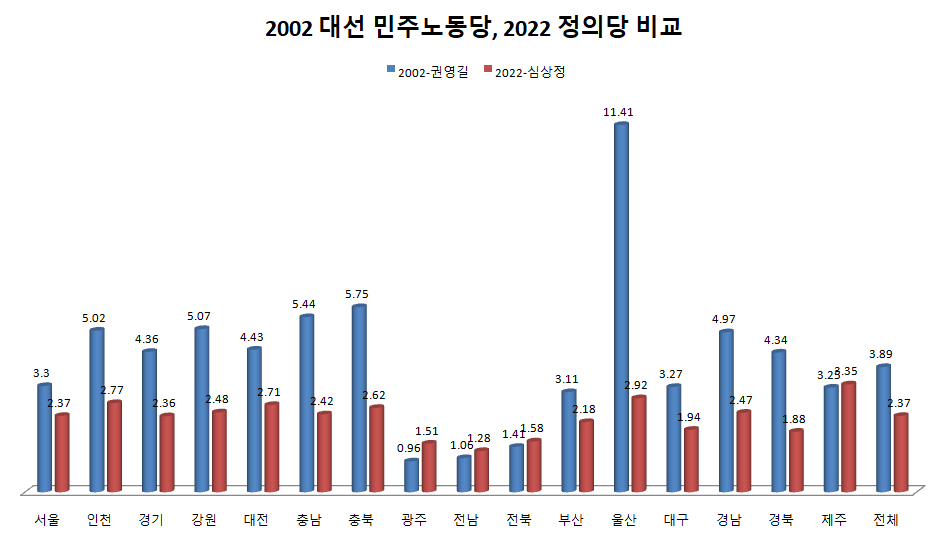 2002년 대선 민주노동당 권영길 후보 득표율