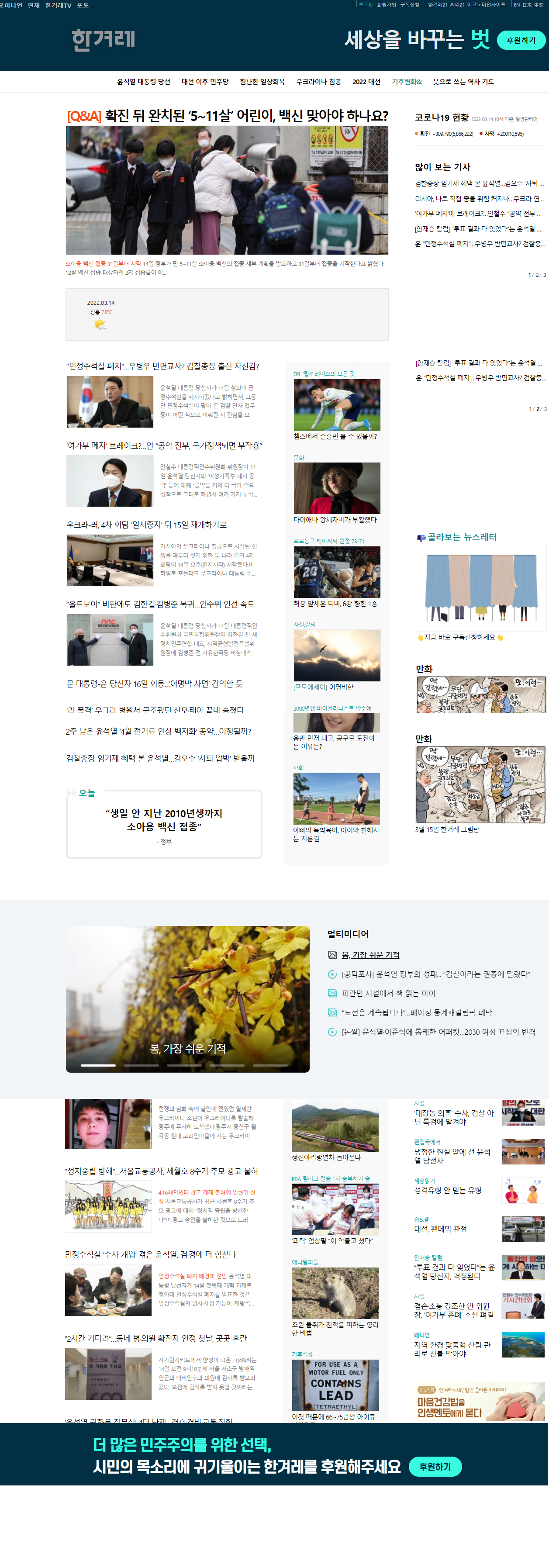 반면 한겨레 신문의 경우, '사설, 컬럼' 등 가장 중요한 신문 지면을 찾기 힘들게 해, 두번, 세번 클릭을 해야하는 불편함이 있다.