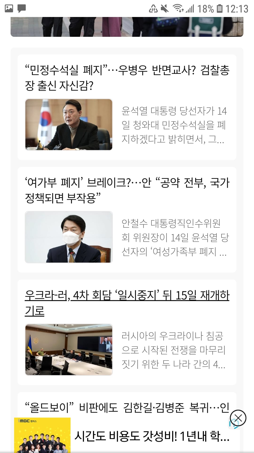 2. 휴대전화 디자인의 경우. 조선일보와 한겨레 신문 간 큰 차이가 없는데,이는 앱 기능 때문으로 보인다. 앱이 신문 디자인과 배열 배치를 어느 정도 한계를 지운다.