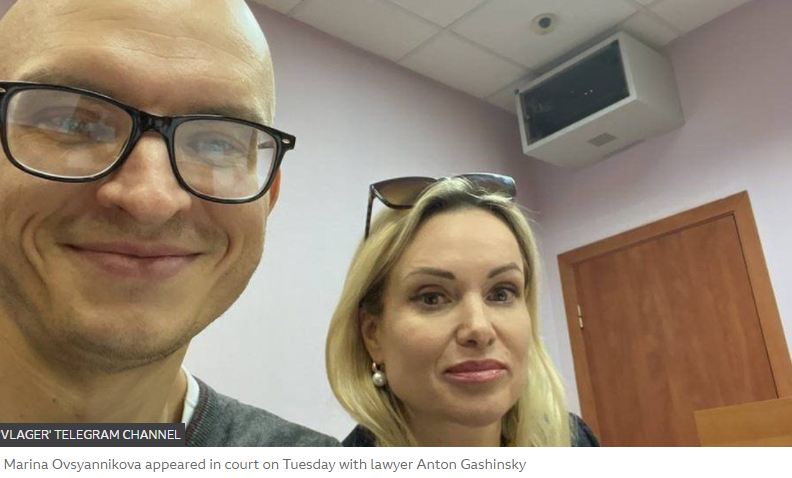 Marina Ovsyannikova appeared in court on Tuesday with lawyer Anton Gashinsky