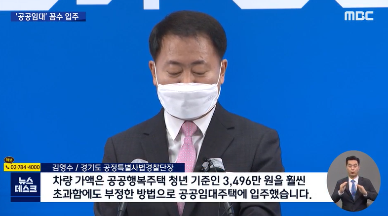 "차량 가액은 공공행복주택 청년 기준인 3,496만 원을 훨씬 초과함에도 부정한 방법으로 공공임대주택에 입주했습니다."