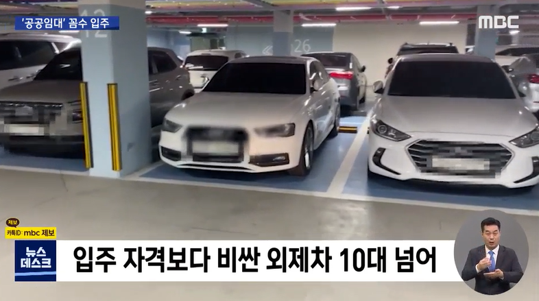 경기도의 공공 임대 주택 지하 주차장에서 많게는 1억원이 넘는 고가의 외제차들이 즐비한 장면이 포착됐습니다.