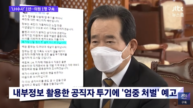 정부는 합동 특별수사본부를 꾸렸고, 내부 정보를 이용한 공직자의 투기 비리에 대해 '패가망신'까지 언급하며 엄중 처벌을 예고했습니다.