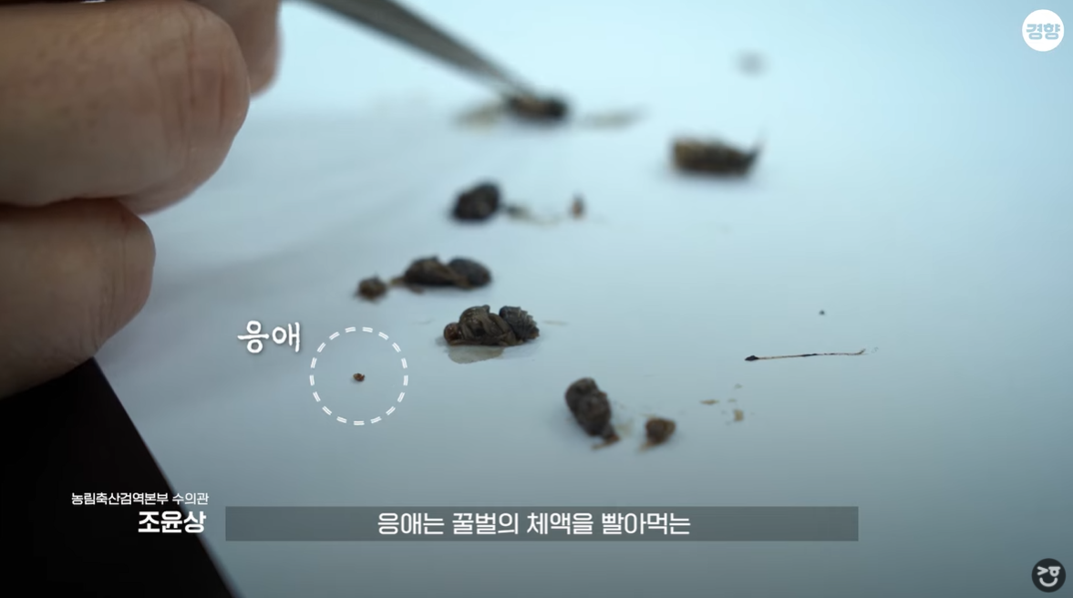 이번 실태조사에 참여한 농림축산검역본부 동식물위생연구부의 조윤상 연구관을 만나 더 자세한 설명을 들었다. 조 연구관은 “전염병학적 측면에서 외부 기생충인 응애가 1차적인 원인으로 지목된다. 90% 이상 농가에서 응애 감염이 된 것을 확인됐다”고 했다. 응애 중에서도 꿀벌응애(바로아응애)와 가시응애가 피해를 준 것으로 확인됐다.