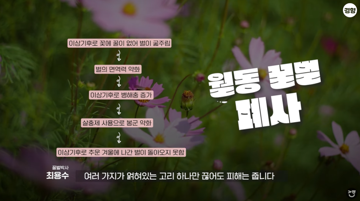 기후변화로 인한 꿀벌 폐사는 우리나라에서만 벌어지는 일은 아니다. 최 박사는 “어떤 학술저널은 ‘월동기 붕괴(Winter Loss)’ 라는 주제로 겨울철 꿀벌 실종에 대한 연구 논문을 받겠다고 했어요. 기후변화로 꿀벌이 폐사 하는 건 전세계적인 현상”이라고 했다.