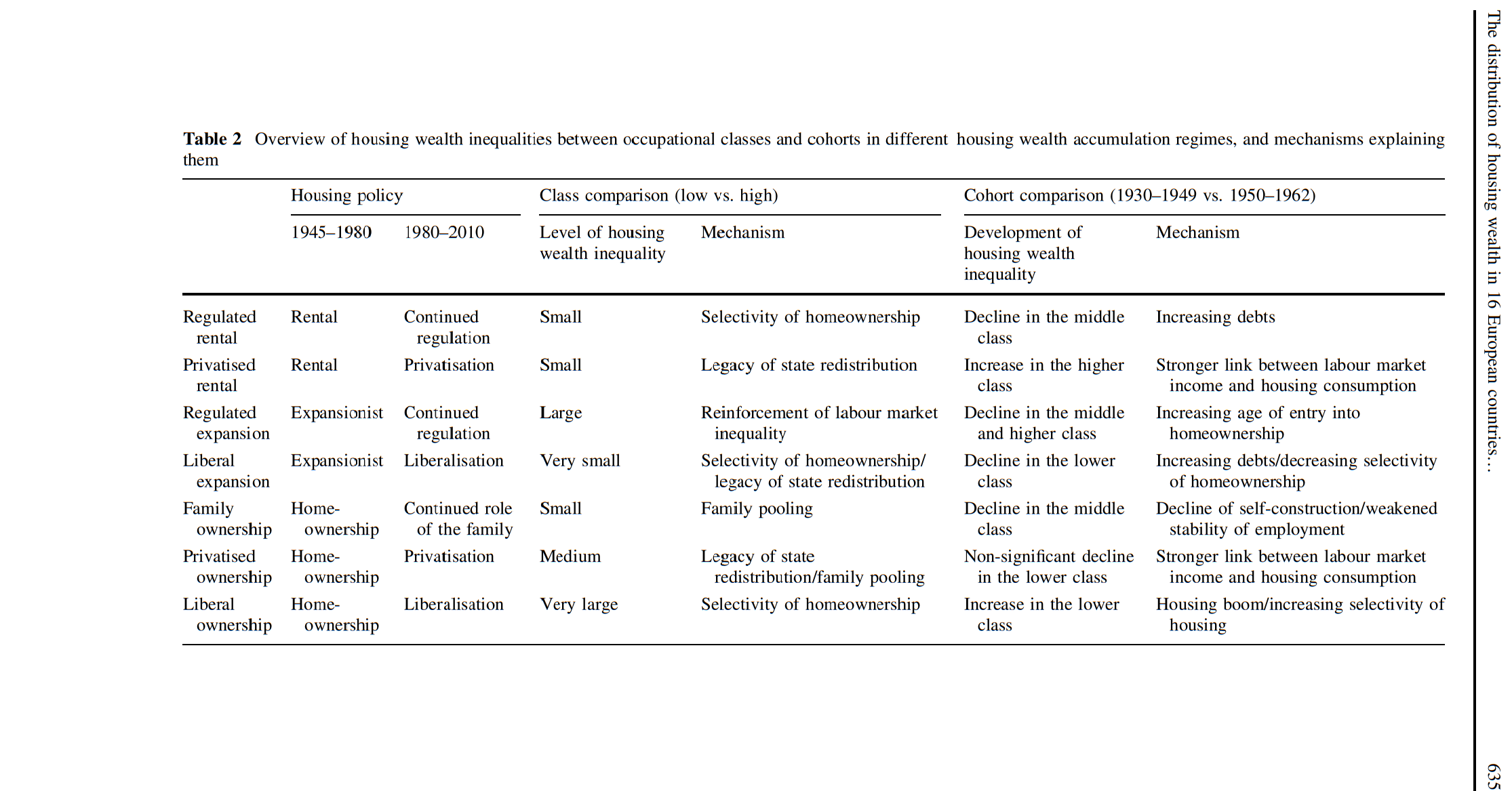 그러나 직업 계층들이 사는 공간이 서로 분리된 경우에만, 이런 리버럴 체제는 그 직업계층들 간 주택 자산 불평등을 유발시킬 것이다.