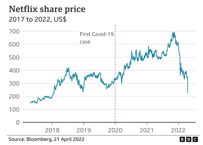 In a trading update on Tuesday, Netflix said its total number of subscribers had fallen by 200,000 in the first three months of 2022, falling well short of its target.