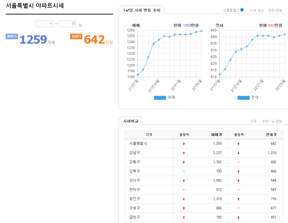 2022.05.02 기준단위면적 3.3㎡ 서울 아파트 평균 매매가 4,163만원