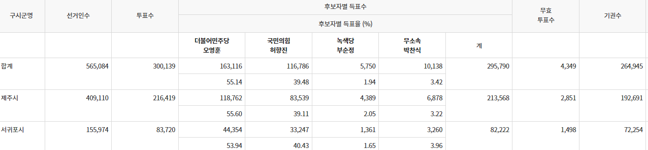 2022.06.01. 제주 도지사 선거 결과.